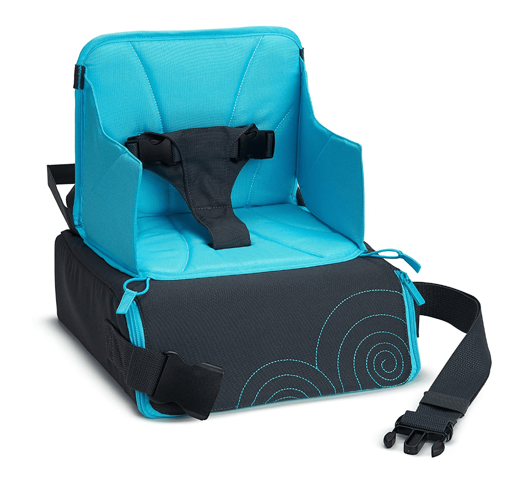 Travel high chair– We take this when we travel just in case we are going anywhere that might not have a booster or high chair. Mostly he will sit in a chair now, but the booster does have a strap, so when we really want him to stay in his seat, it helps. This one has storage too, so I always stick one of his plates, cups, and a set of his silverware inside. I have also read of people using these on the plane, but we haven’t tried that.